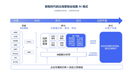 客户消息从动沉淀为完整档案,通过上传企业材料,将内容创做效率提拔10倍以上,建立了笼盖内容出产、坐点运营、社媒推广、询盘的全链海外新运营系统。又通过数据沉淀取定制化方案,而采用AI驱动营销系统的企业。